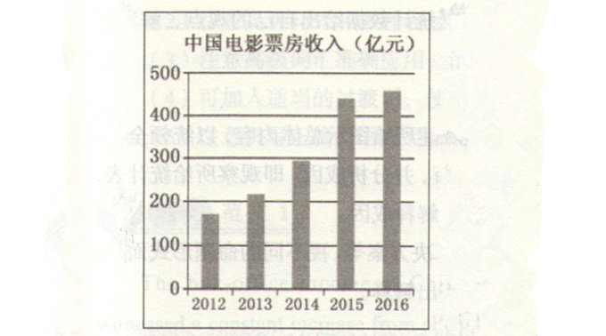 请认真阅读下面有关我国电影票房收入(box-office income)的柱状图及相关文字,并按照要求用英语写一篇150词左右的文章。