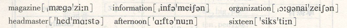 单音节单独存在时,一般都重读。双音节和多音节至少有一个音节要重读。这个音节叫重读音节”,它读得响而重,其余音节相对读得轻而弱,叫“非重读音节”。使用国际音标时,在重读音节左上方加重读符号[’]。678