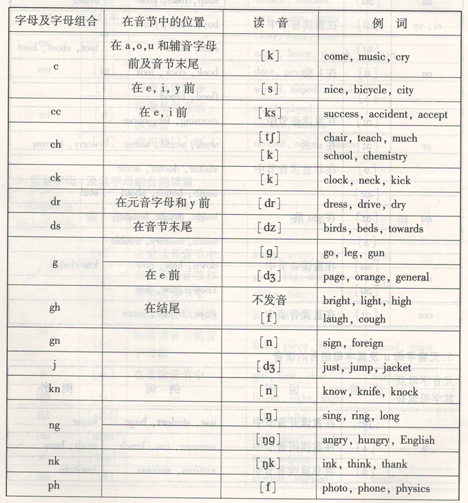 招生考试信息网就分别列表说明元音字母及其字母组合,和辅音字母及其字母组合的拼读规则。