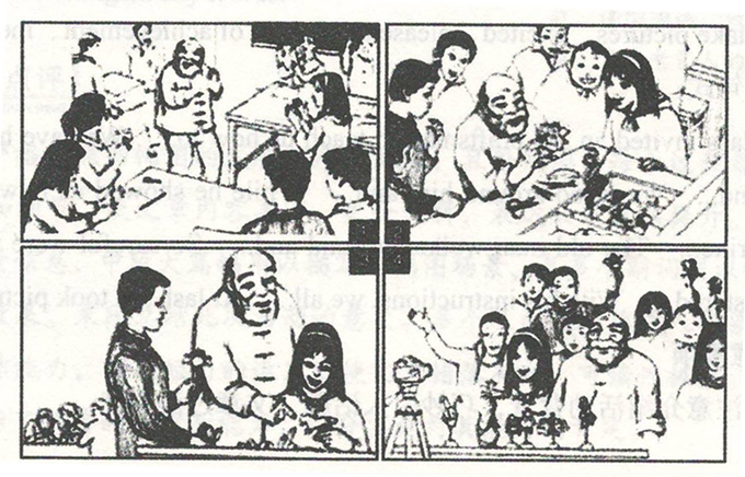 当老艺人和两个男生拿着他工具箱一起走进教室时,受到了掌声的欢迎。当他给我们演示如何一步一步地用生面团做面人时,我们仔细地观察。然后,我们开始尝试自己做。在他的指引下,我们都做得很好。这使我们感到骄傲和兴奋。最后,我们和老艺人合拍了照片。