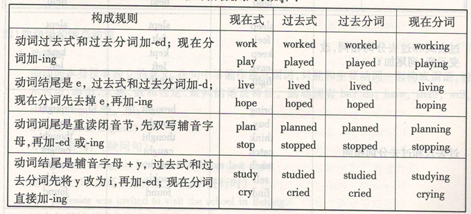 现将规则动词的四种基本形式及构成规则列表如下