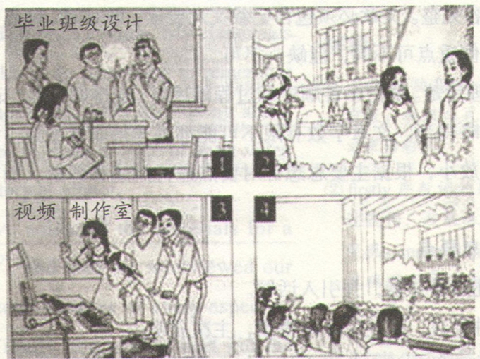 假设你是红星中学高三学生李华,请根据四幅图的先后顺序,写一篇英文周记,记录毕业前夕你们制作以“感恩母校”为主题的毕业纪念视频的全过程。