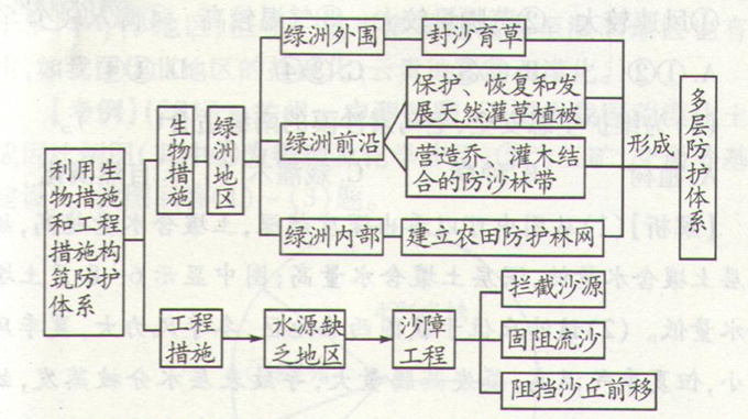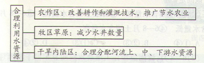 (3)灌草地带:种树种草,发展林业与牧业,禁止盲目开垦。
