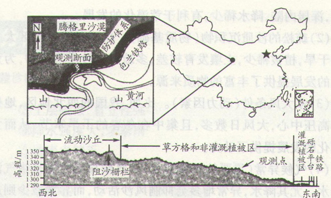 (1)为了保护铁路,人们在该地铺设了草方格沙障,分析该地铺设草方格沙障所起的作用。