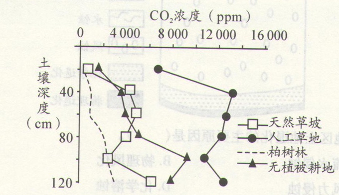 招生考试信息网认为从图中看出,四种植被的不同土壤深度下,均是人工草地CO2浓度最高,岩石最易被溶蚀。