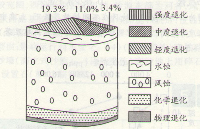 【解析】从图中可以看出,该地外力作用中风蚀作用最强,说明该地区土地退化的主要原因是风力侵蚀。