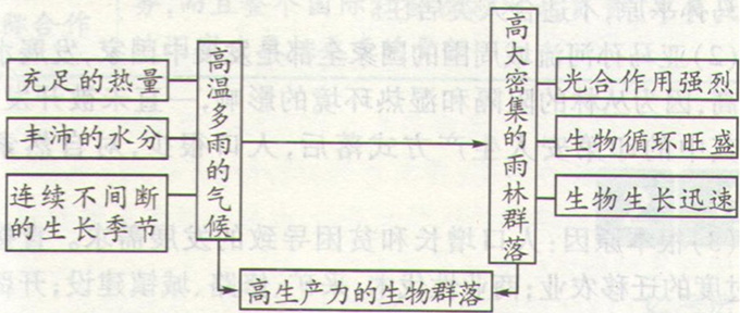 (1)有人说热带雨林是“长着森林的绿色沙漠”,这主要是因为:①在茂密森林的覆盖下,有与沙漠地区相同程度贫瘠的土壤。②雨林生态与沙漠生态都有脆弱的一面,一旦被破坏,恢复相当困难。