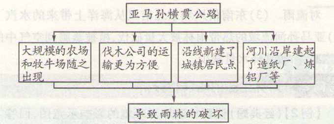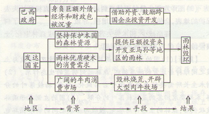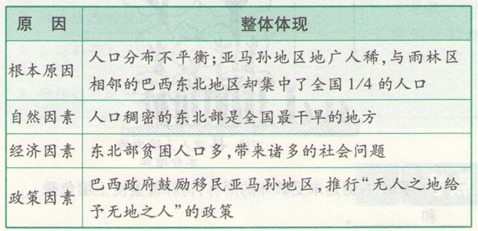 招生考试网认为(1)考查影响人口分布的原因,亚马孙地区是世界上四大人口稀少区之一;(2)热带雨林是重要的自然资源,其开发利用与当地的经济状况有关;(3)结合左栏“人口增长与雨林砍伐的关系”可以总结两方面的原因。