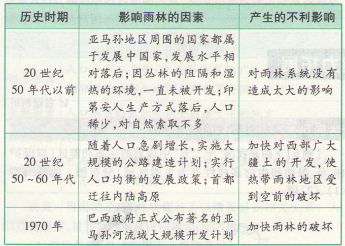 (2)简述亚马孙横贯公路的修建对亚马孙雨林产生的影响。