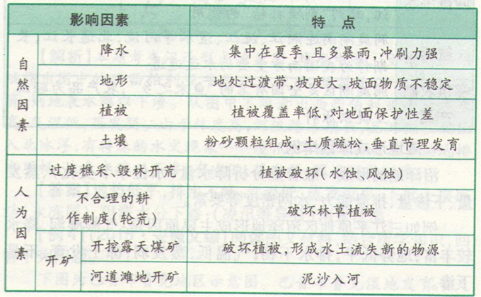 . 重点分析导致地表植被破坏、土质疏松的人类活动。