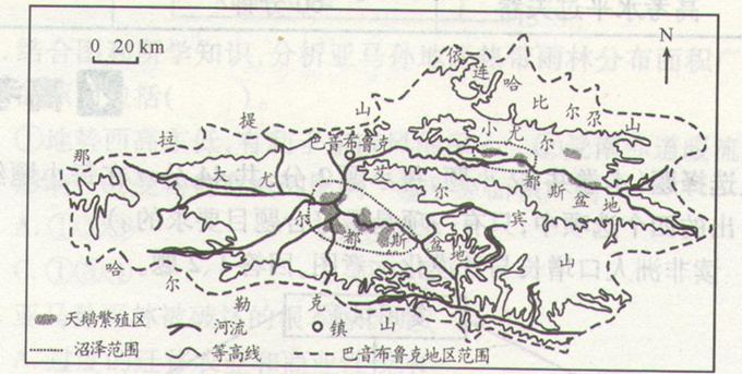 . (2)该地区有较多的冰雪融水、大气降水和地下水补给,河流众多;盆地内地势平坦,排水不畅;气温低,蒸发弱;地下冻土发育,阻滞水分下渗。