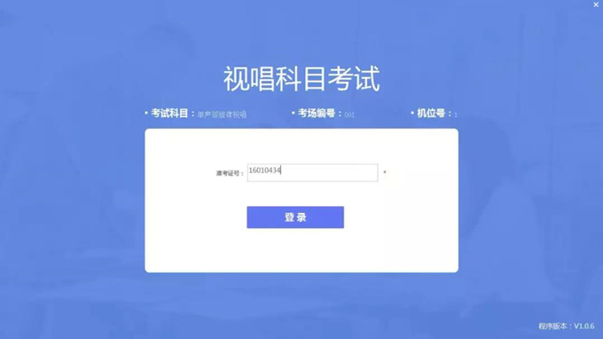 步骤一:使用条码枪扫描考生准考证上的条形码进行登录。 【系统界面】: