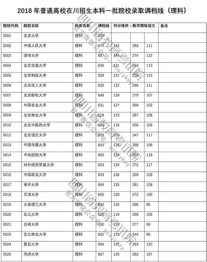理科:2018年普通高校在川招生本科一批院校录取调档线 出炉!
