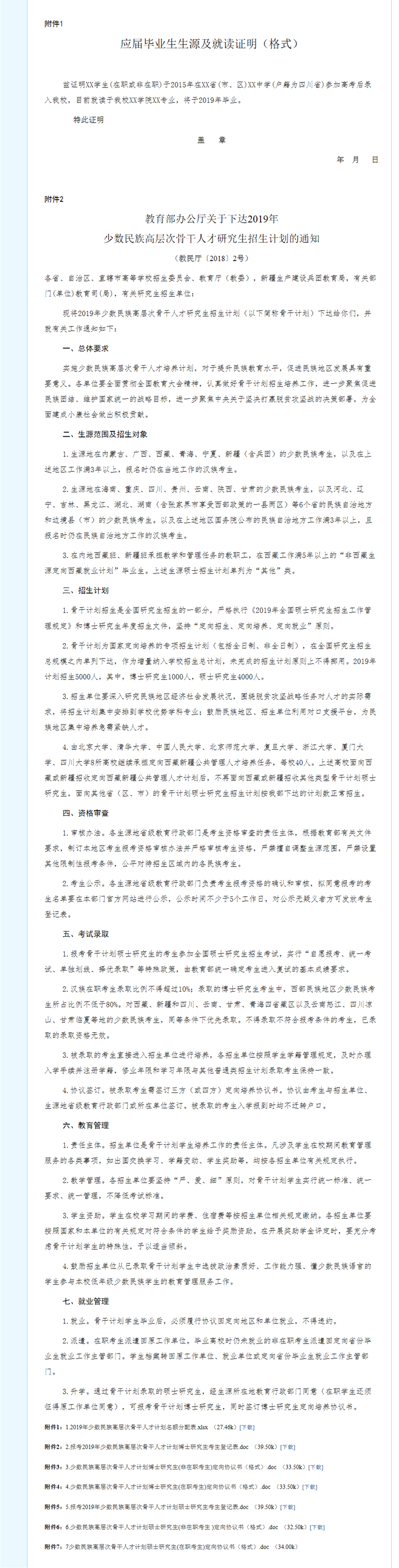 2.教育部办公厅关于下达2019年少数民族高层次骨干人才究生招生计划的通知